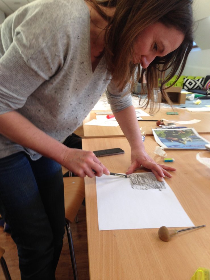 In December 2016, the Welsh Art Therapists group got together for a day out in Carmarthen. They booked a room to make some lino prints at Yr Atom, a Welsh cultural centre which is based at the site of the Carmarthen Journal.