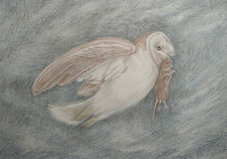 Nearly 40 years ago I was asked to make a painting of an owl with a recently caught mouse. I’m not keen on animals, neither for eating nor for painting. Maybe that’s why I have delayed this picture for so long, I don’t like painting.