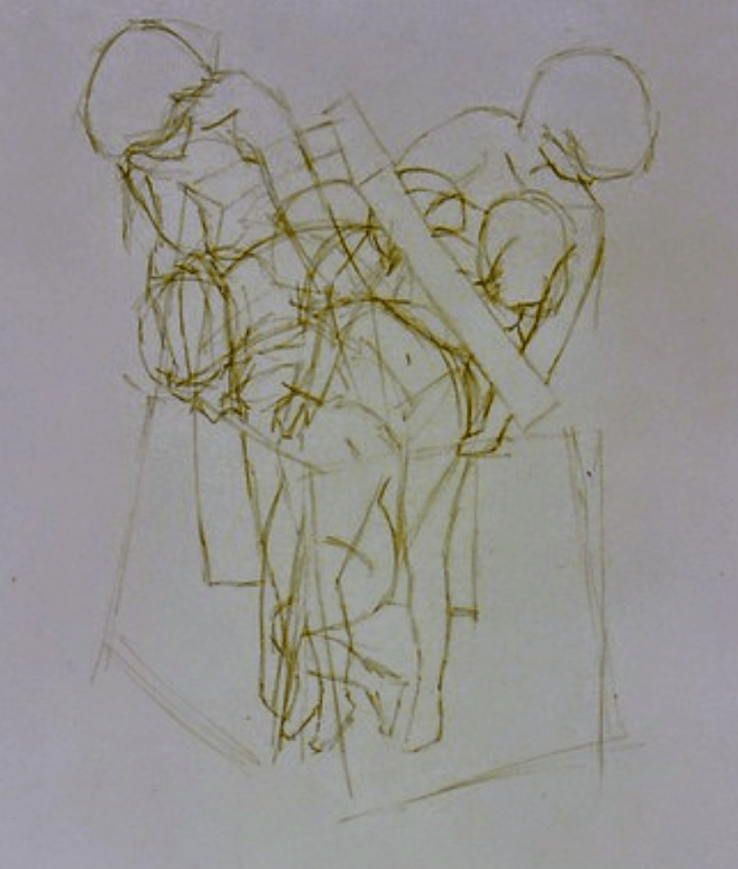 We began with quick exercises to loosen the wrists, usually the model moved around or through a fixed structure. Some models practiced yoga while we drew their repetitive movements.