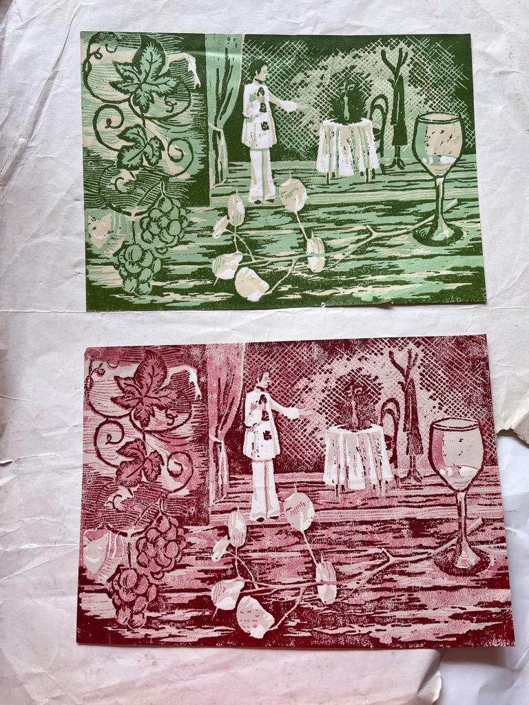 I found this exam piece from 1980. Was there a specific theme on the exam paper? There were discussions with art teachers about what ‘advanced’ level really meant. One art teacher assumed I was being critical of his teaching style, or another person’s work. I wanted to know the difference between ‘ordinary’ and ‘advanced’ level printmaking. One of the art teachers was keen on outlines, which is why the wine glass has a dark line around it rather than having a darker table (or floor?) next to its lighter side.