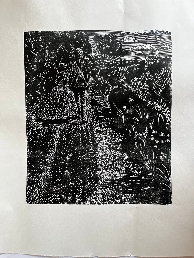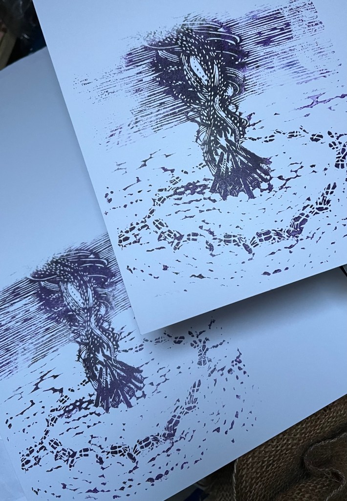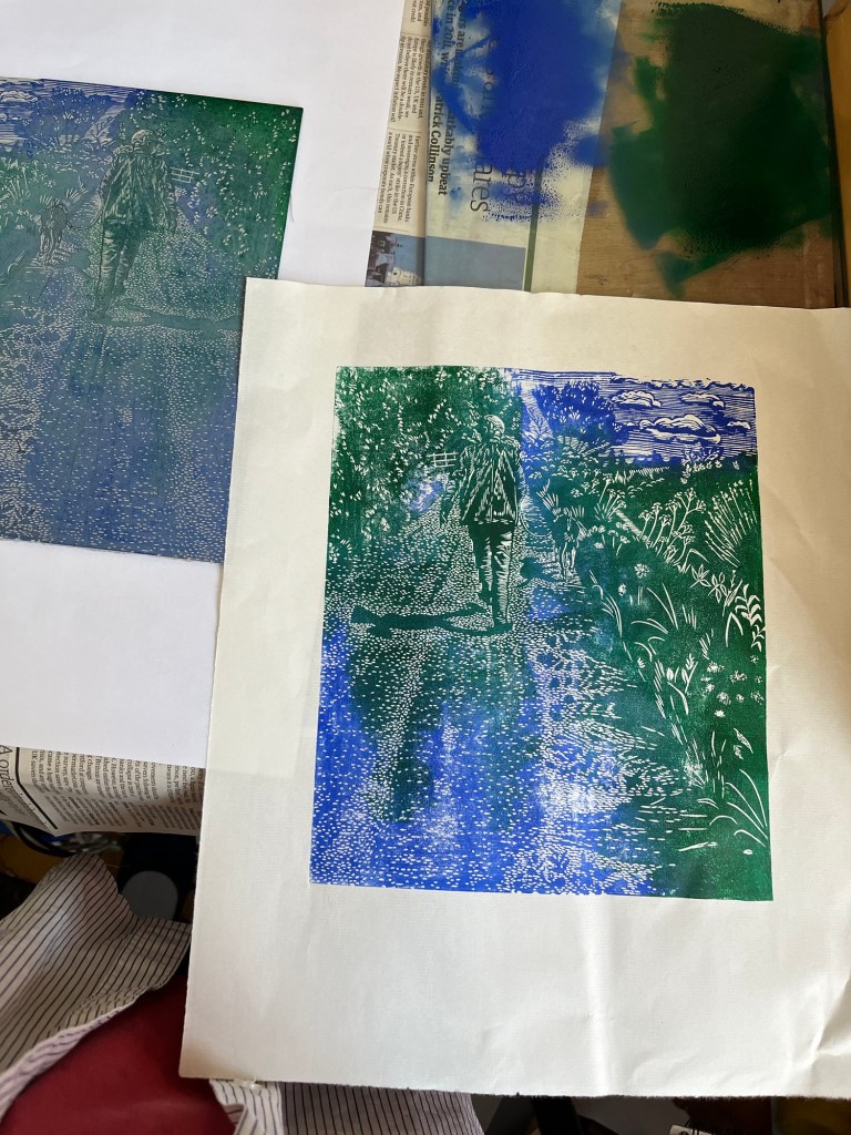 A few years later the art college principal’s secretary queried my Art & Craft A level. It was allegedly unsuitable for a Fine Art establishment, but hadn’t been mentioned until I had been studying there for a year. That sent me back to the midst of this linocut, feeling inadequate and unable to speak clearly about my creative abilities.