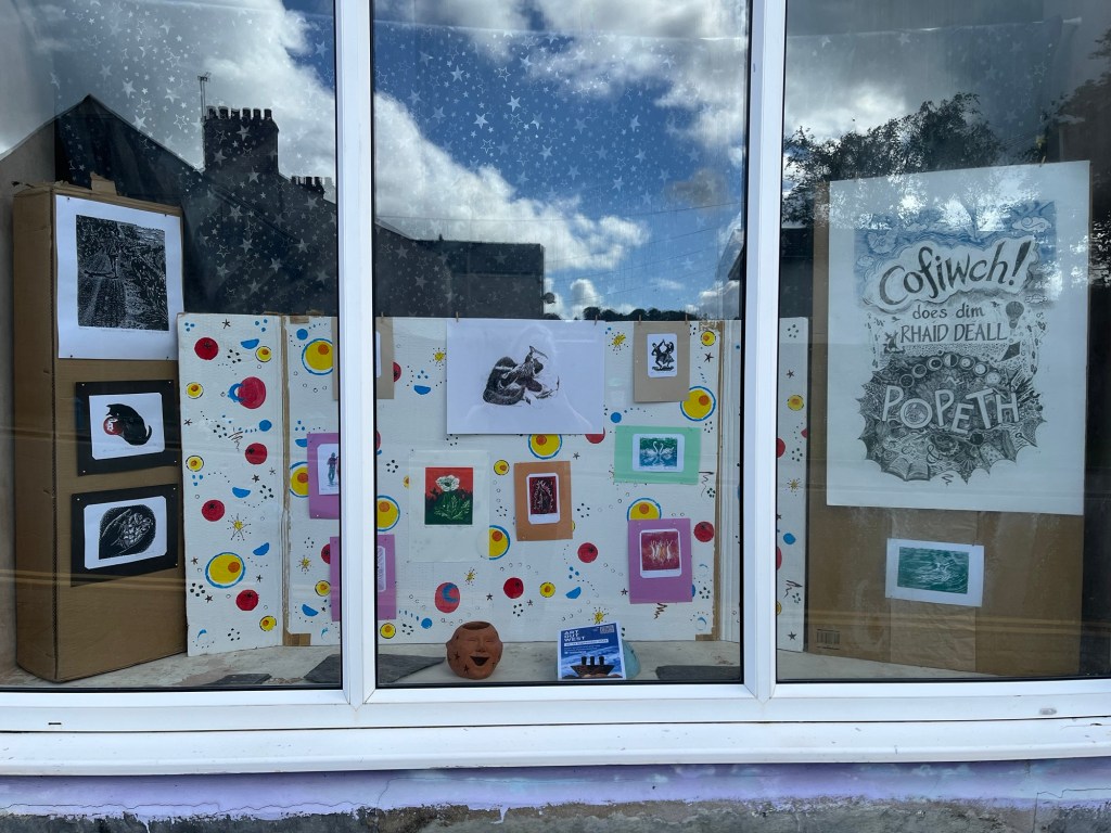 My studio is whichever space is available at the moment, not particularly welcoming for any visitors. Pondering how to put a window exhibition together made me a bit nostalgic for previous studios. The lingering scent of dead pigeons in the roof; tin baths catching the raindrops falling from above. Sharing printing presses with people who left fingerprints on everything(!) There was a lot of admin to help out with in a studio building, the office area was usually warmer so it would be a haven of bustling activity.