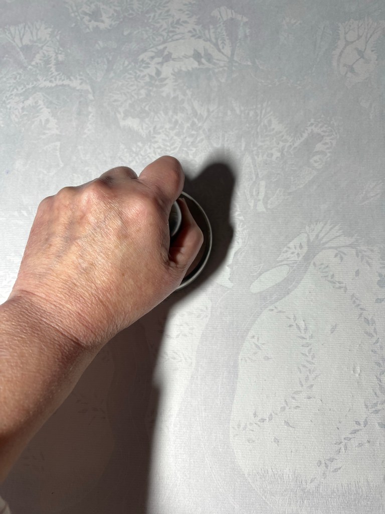 Sometimes a tiny detail isn’t in contact with the paper. A wooden spoon or the edge of a coin is useful to rub that section more closely. My usual beach pebble had disappeared so a piece of lapis lazuli was employed instead.