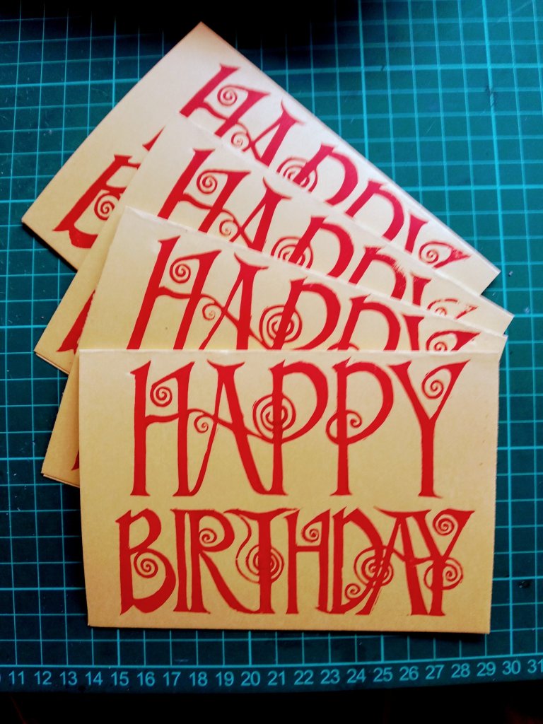 I finished cutting a lino block for future birthday cards. At some point I felt the fine v tool go into the end of my finger. No blood, no pain until the following day. A week later a little v shaped scar has appeared!