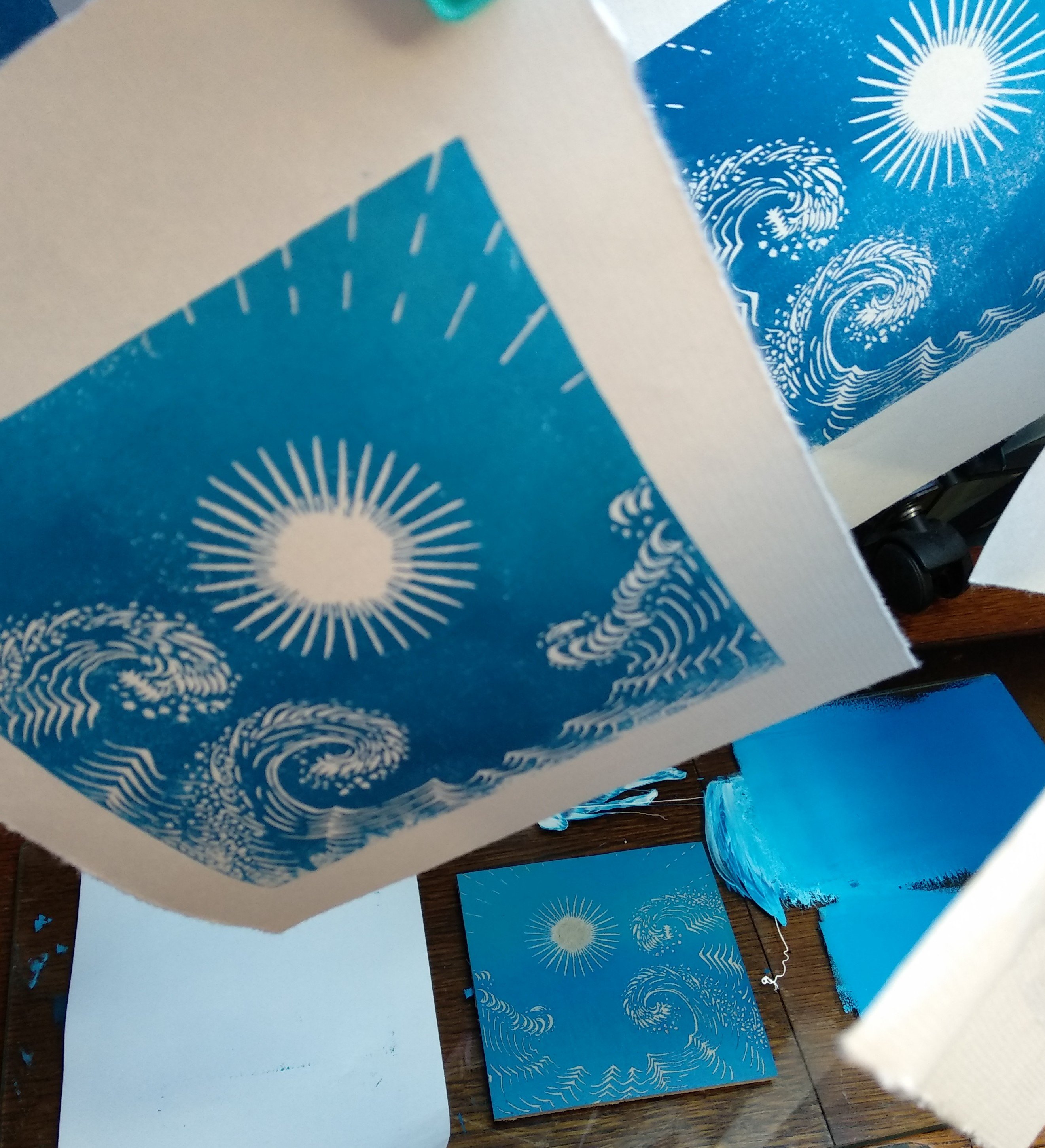 This might be a sketch for a linocut. The lighthouse would be darker with more interesting light from the top. The waves would be darker, obviously.